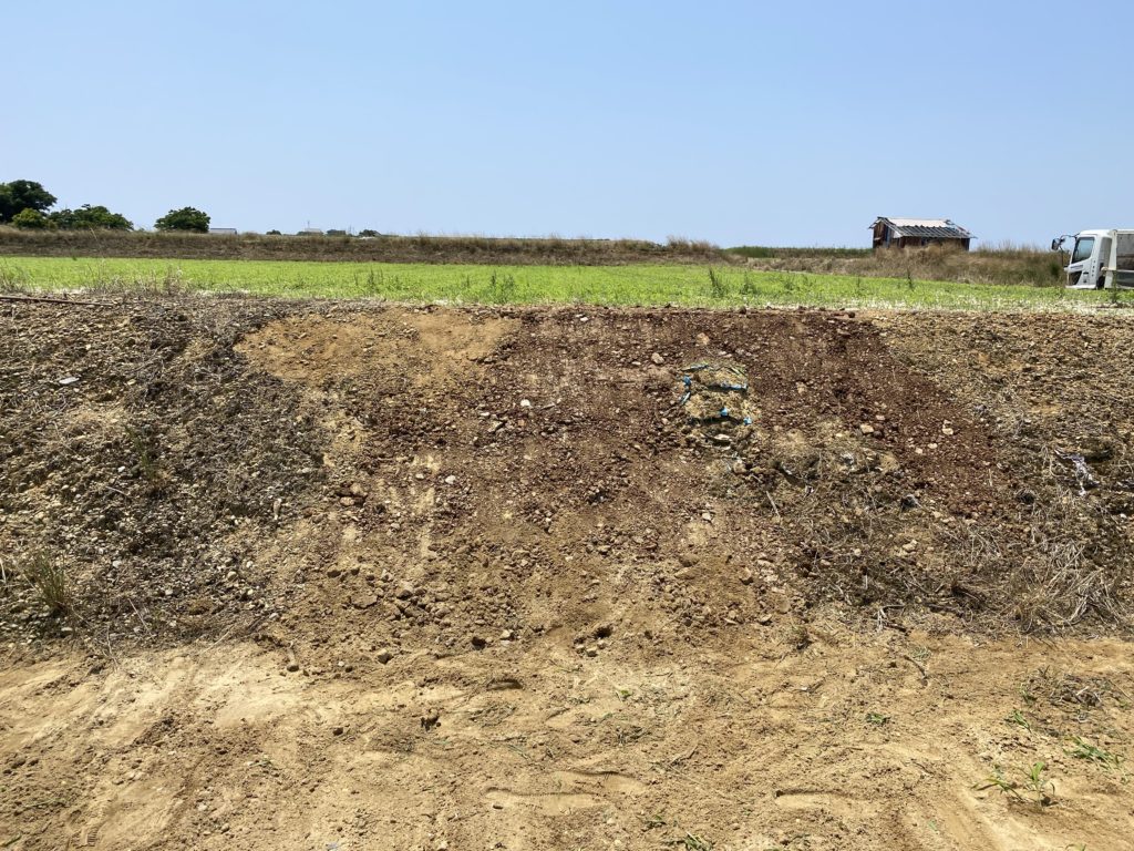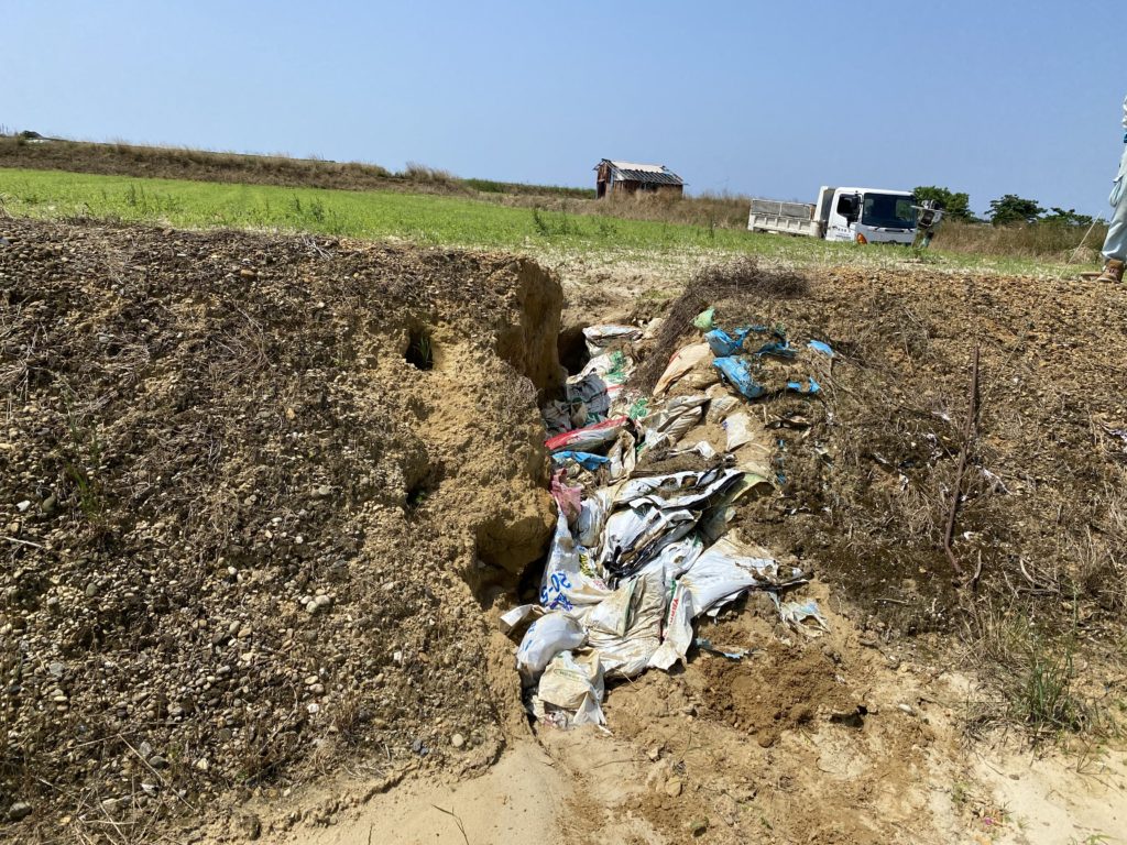 何日か前の豪雨でやられた法面の崩壊箇所の修復をしました〜